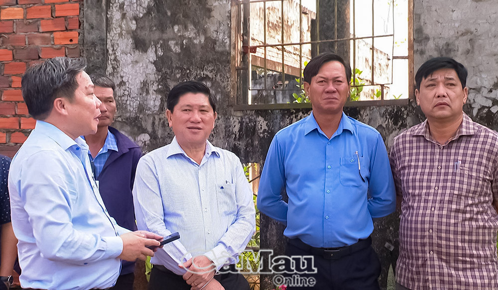 Phó Chủ tịch UBND tỉnh Lê Văn Sử (thứ hai từ trái sang) khảo sát Dự án Kè chống ngập Quốc lộ 1, đoạn qua phường Giá Rai.