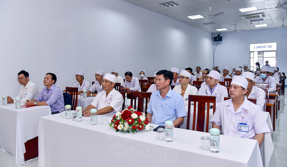 Lãnh đạo Sở Y tế Cà Mau và cán bộ, nhân viên Bệnh viện Đa khoa Bạc Liêu dự lễ công bố quyết định khen thưởng.