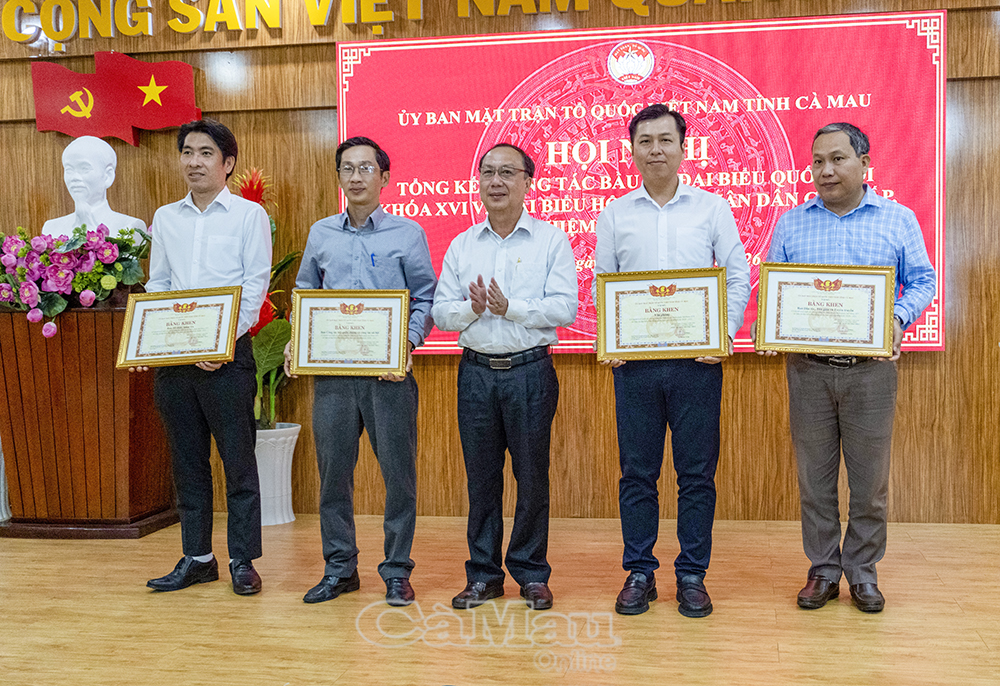 Dịp này, UBND tỉnh tặng Bằng khen cho tập thể Ban Dân chủ, giám sát và phản biện xã hội, cơ quan Uỷ ban MTTQ Việt Nam tỉnh Cà Mau và 6 cá nhân đã có thành tích xuất sắc trong công tác bầu cử.