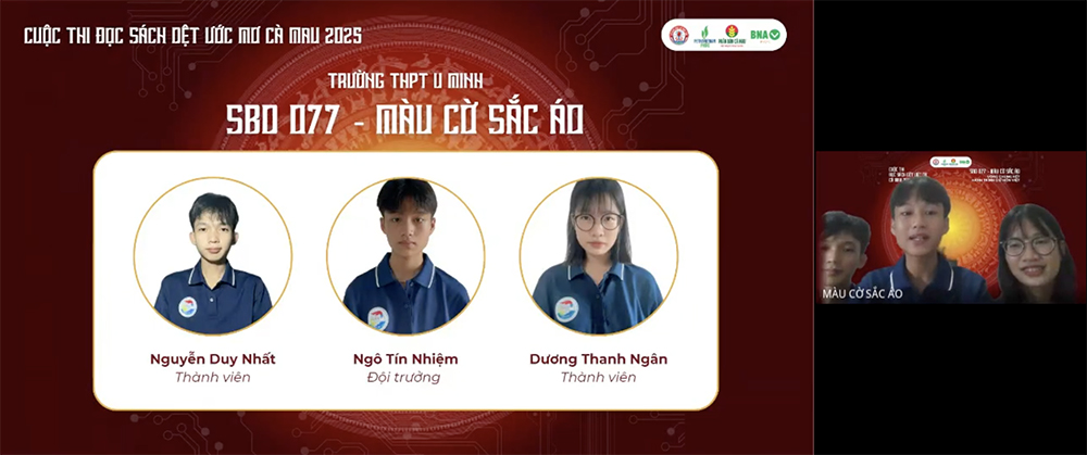 “Cuộc thi là sân chơi tri thức đúng nghĩa, nơi thể hiện tài năng, bản lĩnh và kiến thức. Em hy vọng Trường THPT U Minh sẽ thành lập CLB Sách và Hành động, để lan toả thói quen đọc sách đến nhiều bạn học sinh hơn”, Đội trưởng đội “Màu Cờ Sắc Áo” Ngô Tín Nhiệm, Quán quân mùa giải 2025, bày tỏ.