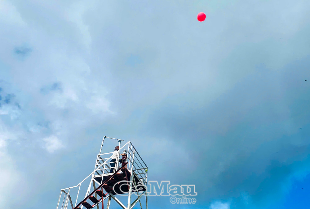 Cán bộ quan trắc thả bóng thám không người lái (pilot) để đo một số yếu tố khí tượng theo phương thẳng đứng.