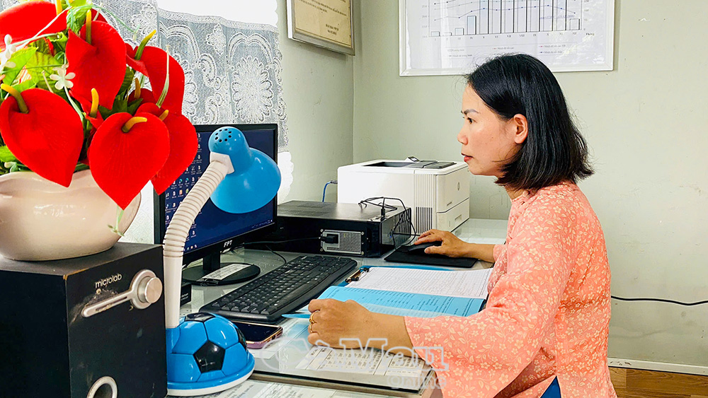 Chị Phạm Thị Hồng Hưng cần mẫn ghi chép số liệu để báo cáo lên Đài Trung tâm.