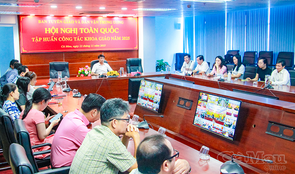 Báo Cà Mau Ngày 12/11, Ban Tuyên giáo và Dân vận Trung ương tổ chức Hội nghị toàn quốc tập huấn công tác khoa giáo năm 2025 theo hình thức trực tuyến, kết nối hơn 2.700 điểm cầu với trên 20.000 đại biểu cả nước.