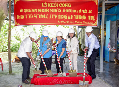 Chào mừng Đại hội Đại biểu MTTQ Việt Nam tỉnh Cà Mau lần thứ I, nhiệm kỳ 2025-2030, ngày 27/11, Uỷ ban MTTQ xã Phước Long tổ chức khởi công xây dựng cầu giao thông nông thôn tại ấp Phước Hoà A.
