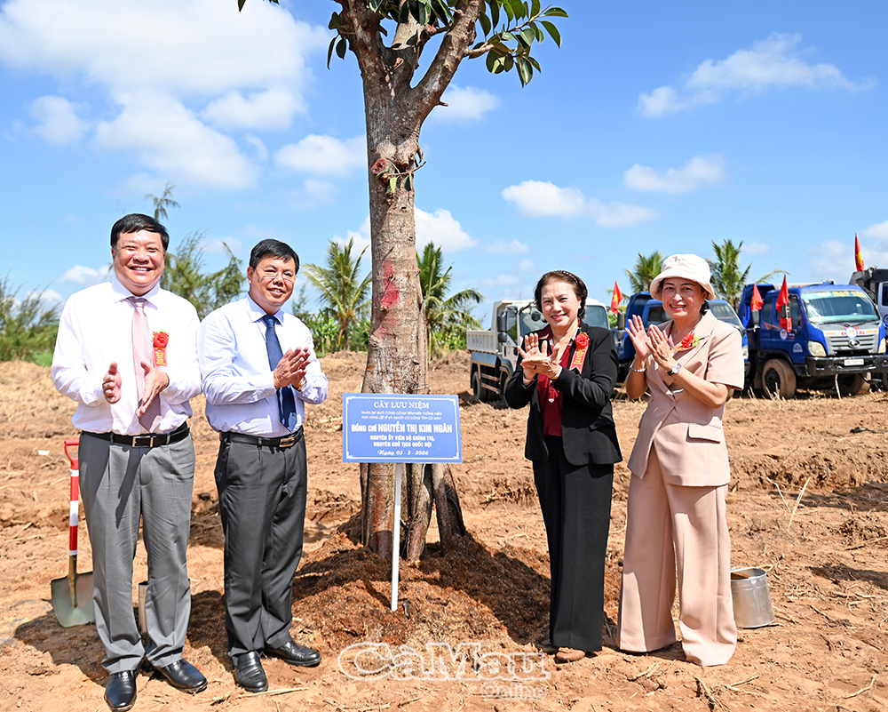 Nguyên Thủ tướng Chính phủ Nguyễn Tấn Dũng (thứ hai từ phải sang) cùng Bí Thư Tỉnh uỷ Cà Mau, Nguyễn Hồ Hải và đồng chí Phạm Thành Ngại, Chủ tịch UBND tỉnh Đồng Tháp ( nguyên Chủ tịch UBND tỉnh Cà Mau, thứ hai bên trái) và Phó chủ tịch UBND tỉnh Ngô Vũ Thăng trồng cây lưu niệm tại khu vực dự án công trình.