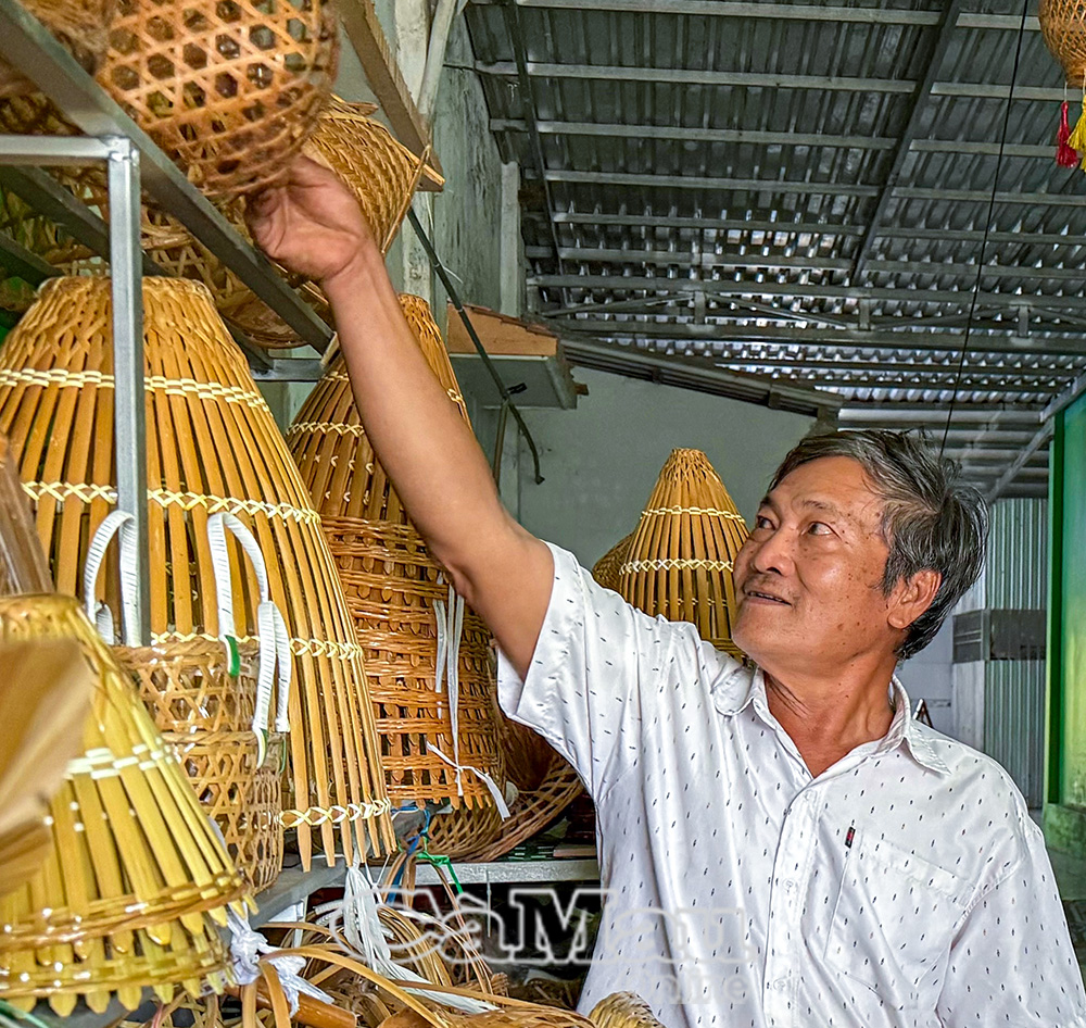 Ông Phan Hoàng Thúc, ấp Nhà Lầu 1, xã Ninh Thạnh Lợi có 3 sản phẩm thủ công mỹ nghệ là giỏ xách, lẵng hoa, giỏ tàng ong đan từ trúc được công nhận OCOP 3 sao.
