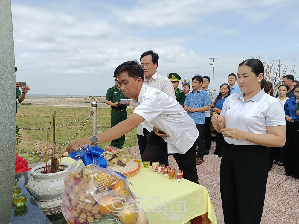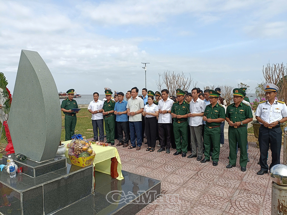 Trong không khí trang nghiêm, thành kính, đoàn dâng hoa, dâng hương tại bia tưởng niệm liệt sĩ Khởi nghĩa Hòn Khoai, dành phút mặc niệm tưởng nhớ các anh hùng liệt sĩ đã hy sinh vì độc lập, tự do của dân tộc. Những chiến công oanh liệt của quân và dân ta năm xưa tiếp tục là nguồn động viên tinh thần to lớn, hun đúc ý chí cách mạng cho các thế hệ hôm nay trên mảnh đất địa đầu cực Nam thiêng liêng của Tổ quốc.