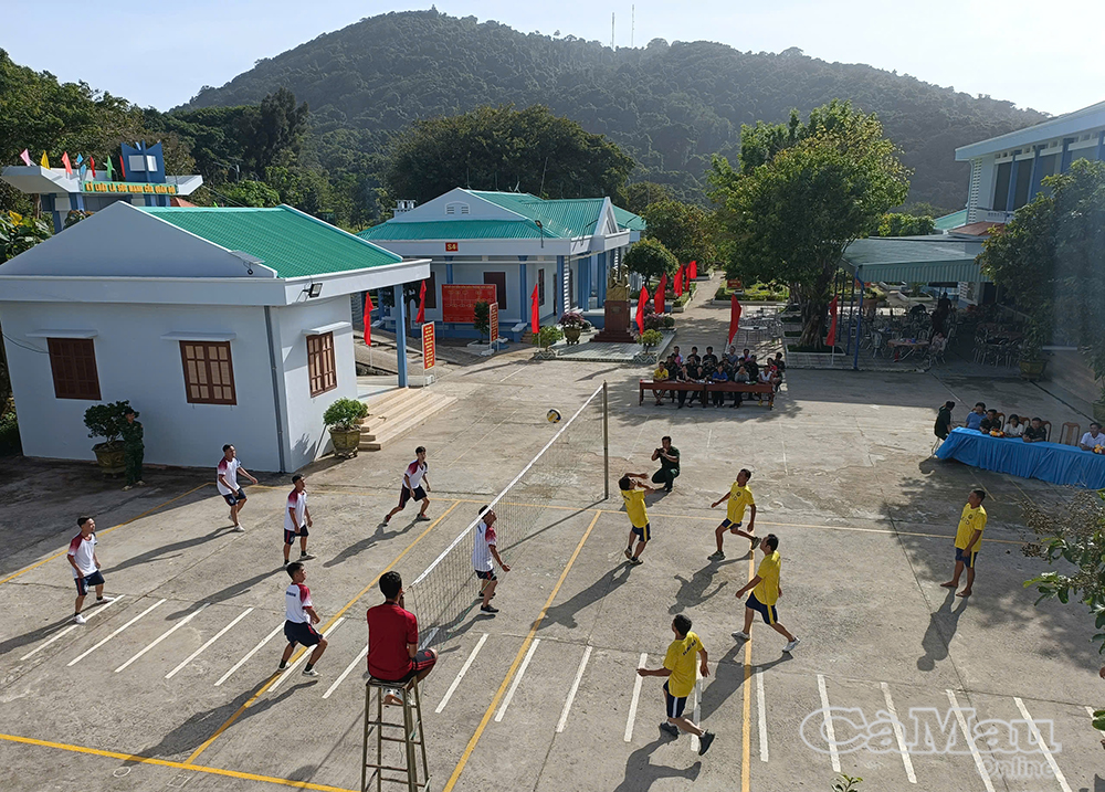 Các đơn vị giao lưu thể dục, thể thao nhân hoạt động về nguồn - giáo dục truyền thống tại đảo Hòn Khoai.