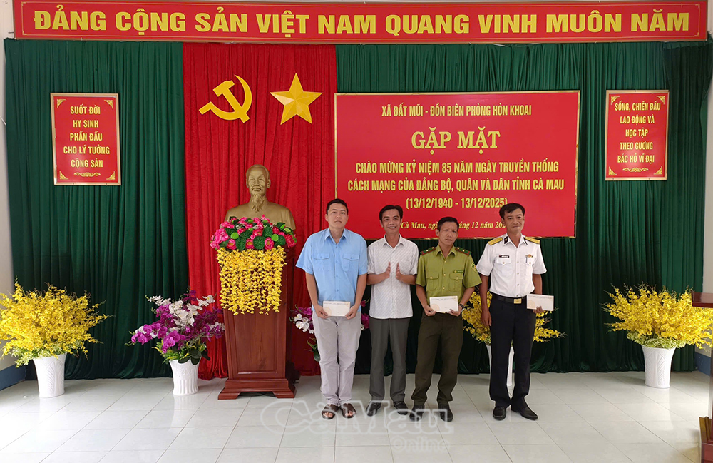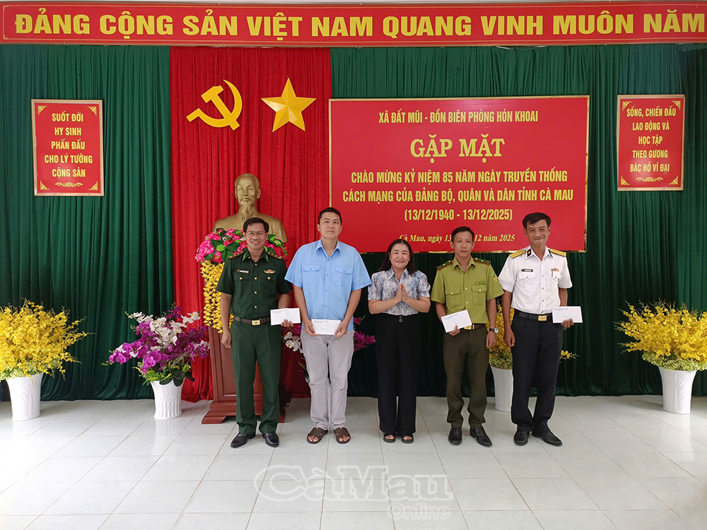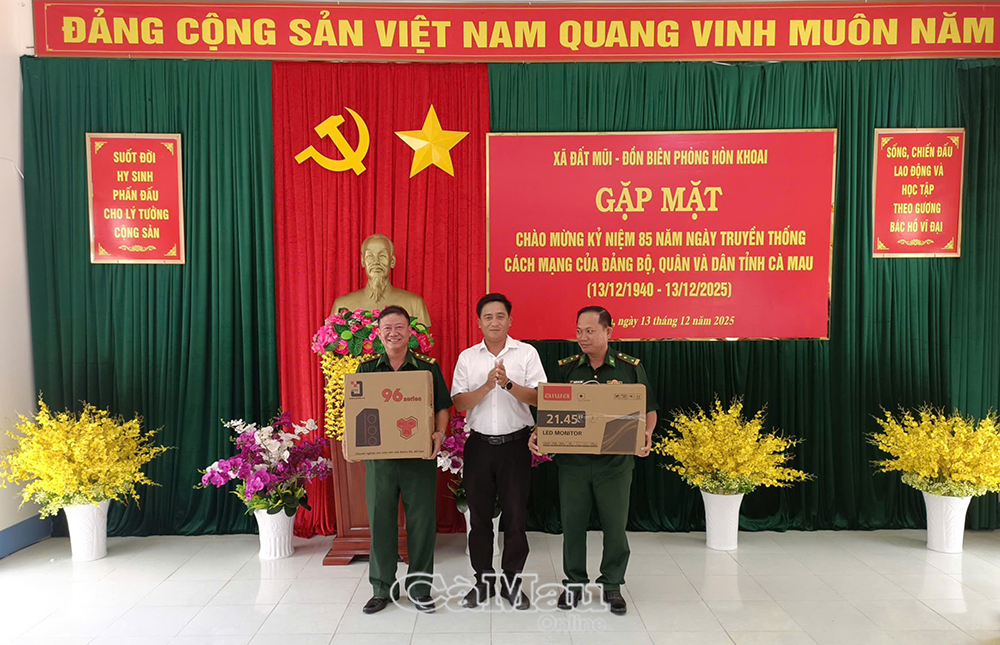 Nhân dịp này, đoàn công tác xã Đất Mũi, Xã Phan Ngọc Hiển và xã Tân Ân đã trao tặng nhiều phần quà thiết thực cho các đơn vị đang làm nhiệm vụ trên đảo; riêng xã Đất Mũi trao tặng Đồn Biên phòng Hòn Khoai một bộ máy tính phục vụ công tác. Hoạt động góp phần tăng cường mối quan hệ đoàn kết, gắn bó quân - dân, xây dựng thế trận biên phòng toàn dân vững chắc nơi tuyến đầu biển, đảo Cà Mau.