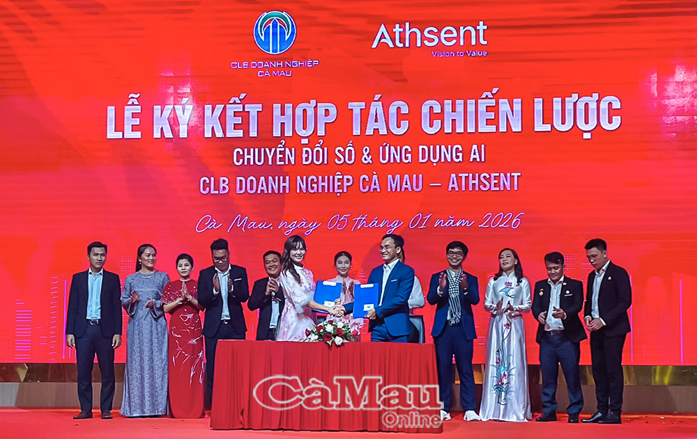 Tại diễn đàn, Câu lạc bộ Doanh nghiệp Cà Mau và Hội Doanh nhân trẻ tỉnh Cà Mau ký kết chương trình phối hợp toàn diện trong năm 2026. Bên cạnh đó, Câu lạc bộ cũng ký kết chiến lược chuyển đổi số và ứng dụng trí tuệ nhân tạo (AI) với nền tảng số Athsent, mở ra hướng đi mới trong quản trị và phát triển doanh nghiệp.