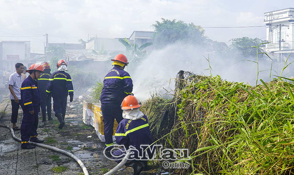 Lực lượng Cảnh sát PCCC & CNCH Công an tỉnh Cà Mau điều động 3 xe chuyên dụng đến hiện trường lúc 15 giờ.