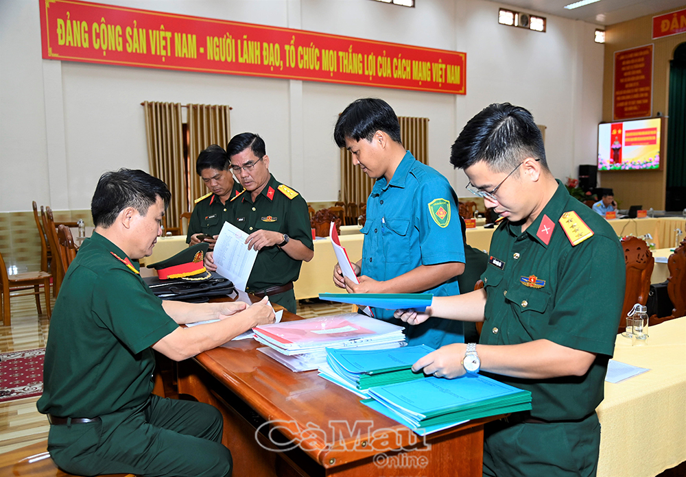 Quang cảnh triển khai công tác kiểm tra tại Bộ CHQS tỉnh Cà Mau.