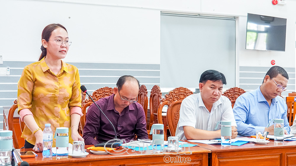 Bà Nguyễn Hồng Cẩm, Phó Bí thư Đảng uỷ, Chủ tịch UBND xã Long Điền, trình bày những khó khăn, vướng mắc của dự án.