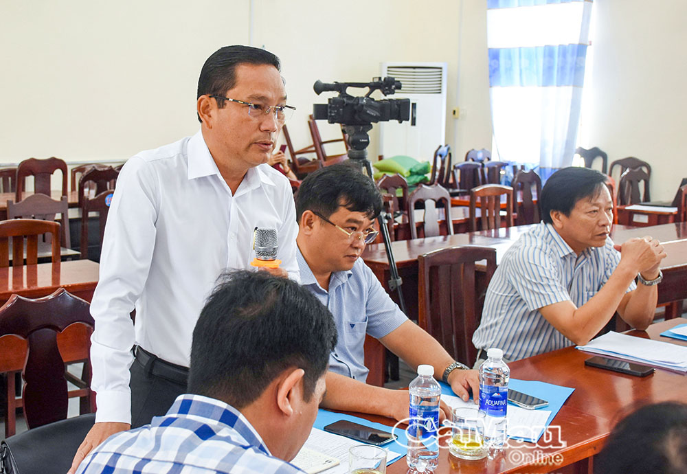 Ông Phạm Thống Nhất, Phó Giám đốc Sở Khoa học và Công nghệ, trao đổi, thông tin thêm một số nội dung với xã Châu Thới tại buổi làm việc.