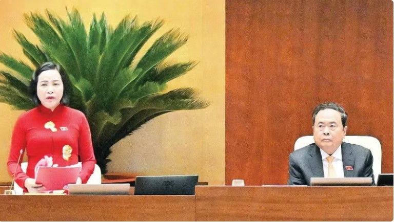 Chủ tịch Quốc hội Trần Thanh Mẫn và Phó Chủ tịch Quốc hội Nguyễn Thị Thanh chủ trì, điều hành phiên họp. (Ảnh DUY LINH)
