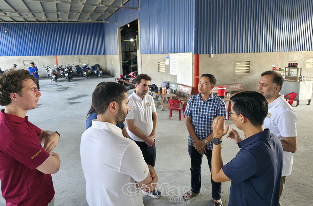 Lãnh đạo HTX Nông nghiệp Vĩnh Cường trao đổi với đối tác nước ngoài nhằm mở rộng thị trường, đảm bảo đầu ra ổn định và nâng cao giá trị hạt gạo cho nông dân.