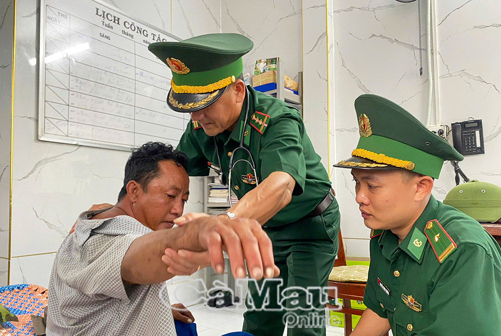Quân y Đồn Biên phòng Gành Hào chăm sóc sức khỏe cho thuyền viên gặp nạn.