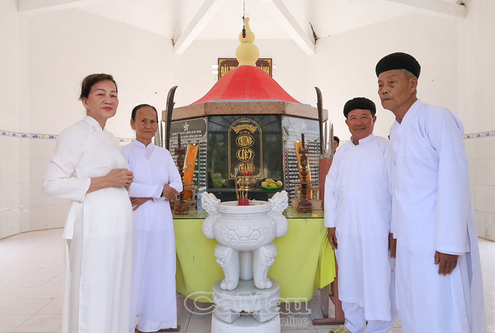 Tín đồ họ đạo thành kính tưởng nhớ 137 chiến sĩ đã hy sinh trong trận Giồng Bốm năm 1946 tại Toà Trung liệt thánh.