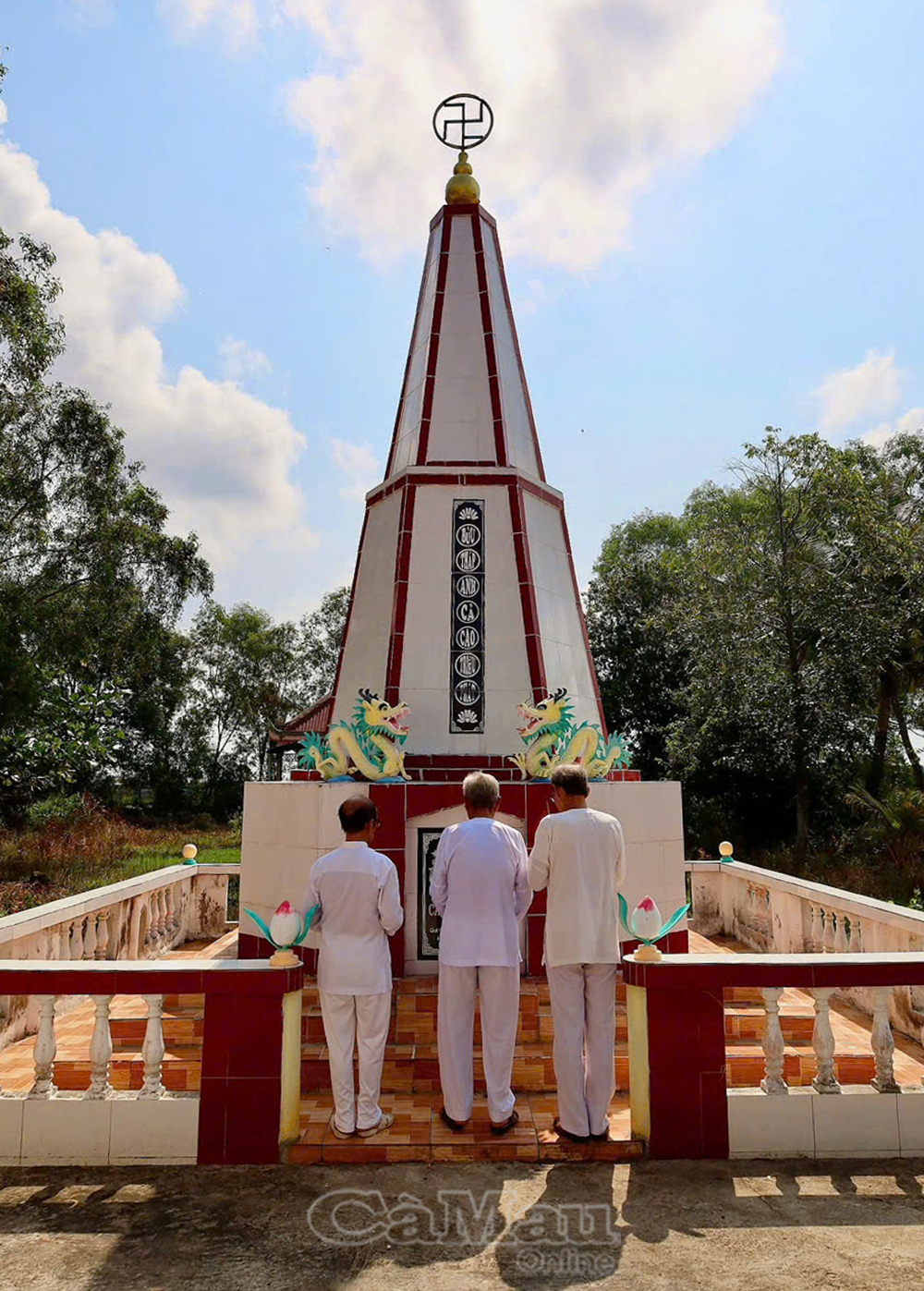 Ban Trị sự Thánh thất Ngọc Minh thắp hương tại mộ cụ Cao Triều Phát - người dẫn dắt tín đồ Cao Đài Minh Chơn đạo.