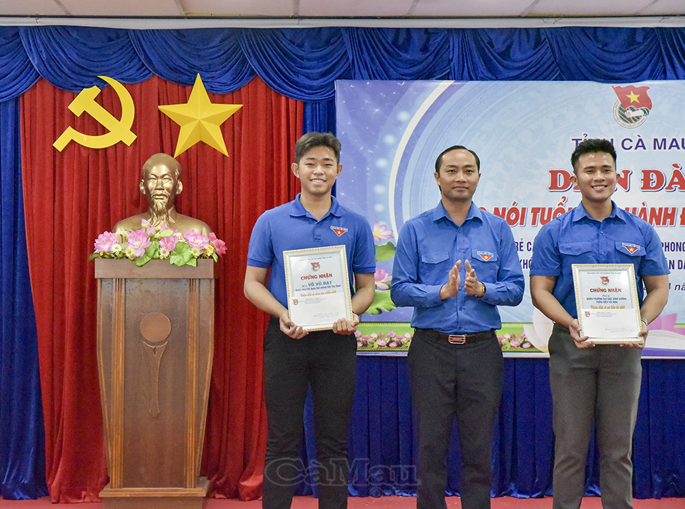 Phó Chủ tịch Uỷ ban MTTQ Việt Nam tỉnh Cà Mau, Bí thư Tỉnh đoàn Phạm Tuấn Tài trao khen thưởng tập thể, cá nhân có thành tích xuất sắc trong chiến dịch truyền thông “Tuổi trẻ Cà Mau - Niềm tin từ lá phiếu”.
