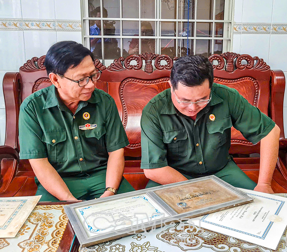 CCB Đặng Thanh Hải (bìa trái) chia sẻ về những huy chương, giấy khen đạt được khi phục vụ trong môi trường quân đội.