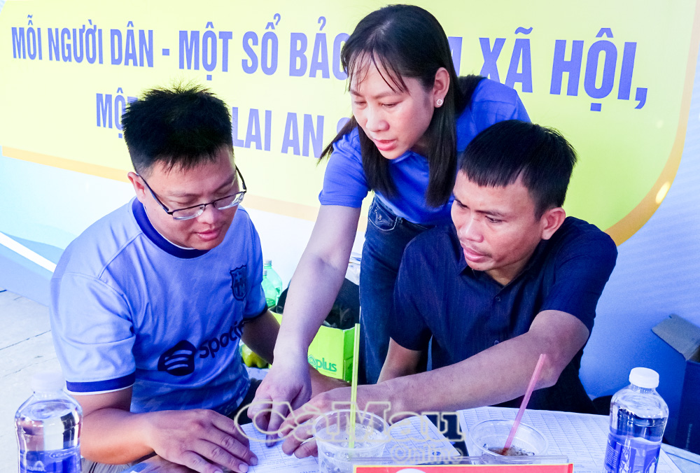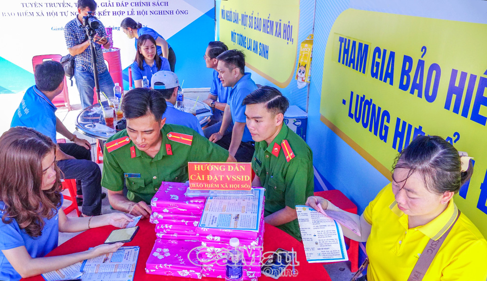 Tại gian hàng, người dân được cán bộ tư vấn cụ thể về mức đóng, phương thức tham gia và quyền lợi khi hưởng lương hưu, bảo hiểm y tế. Đồng thời, cán bộ trực tiếp hướng dẫn cài đặt, sử dụng ứng dụng VssID, giúp người dân theo dõi quá trình tham gia bảo hiểm một cách thuận tiện. Các hoạt động như phát tờ rơi, tặng quà, hỏi - đáp có thưởng tạo không khí sôi nổi, thu hút tiểu thương, lao động tự do, ngư dân và học sinh tham gia.