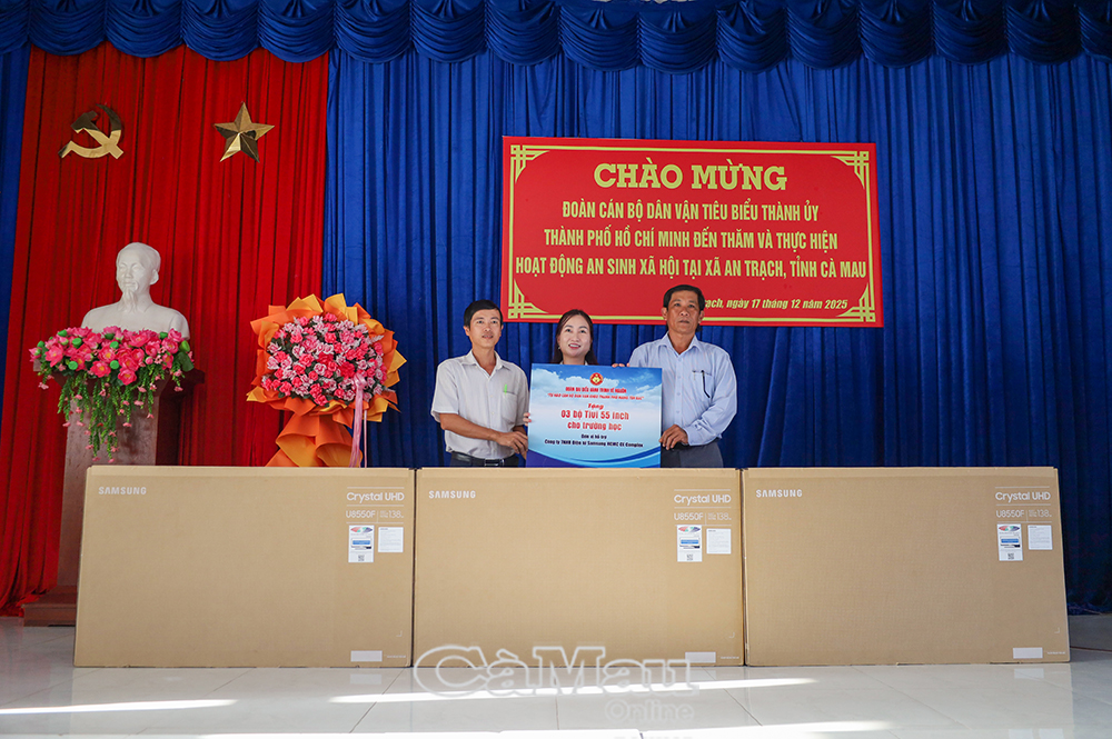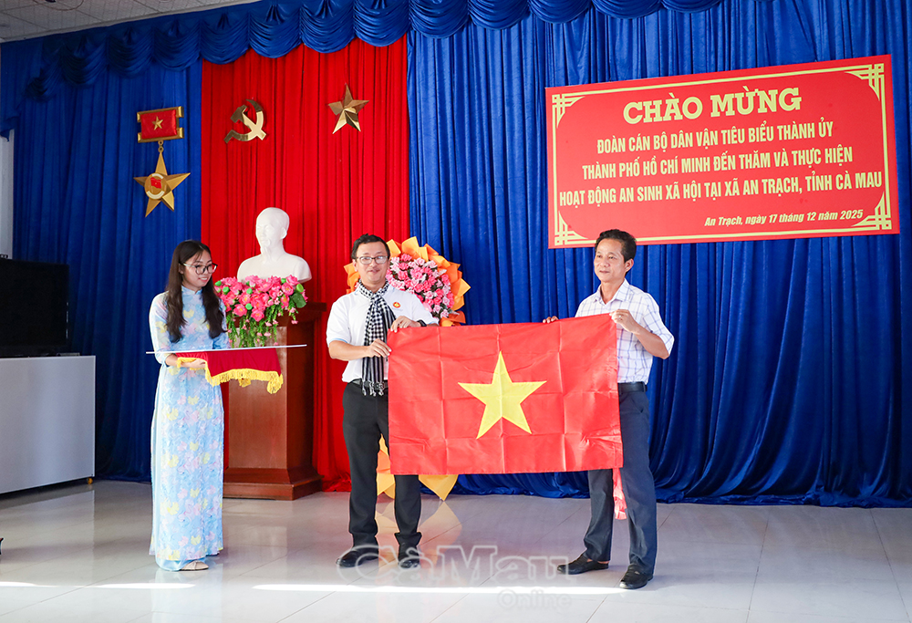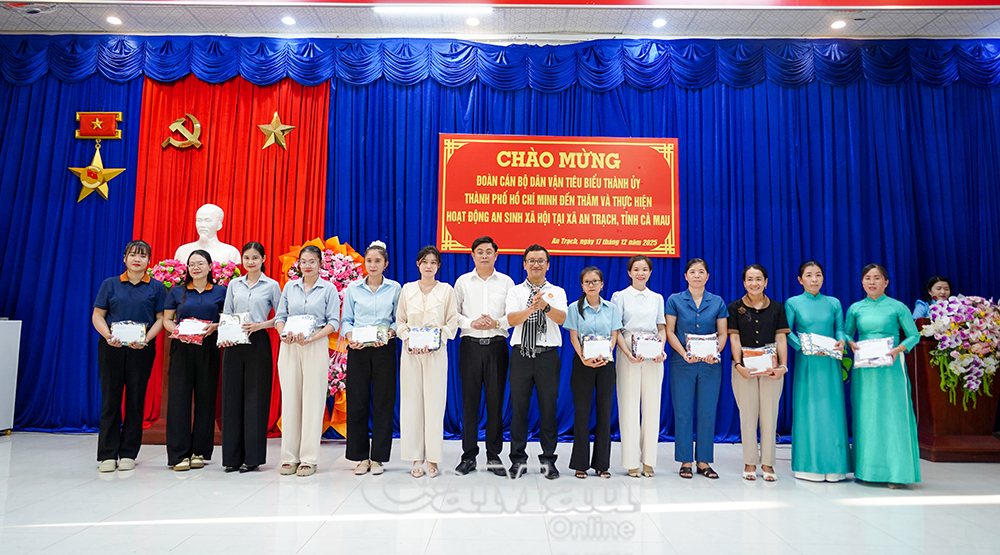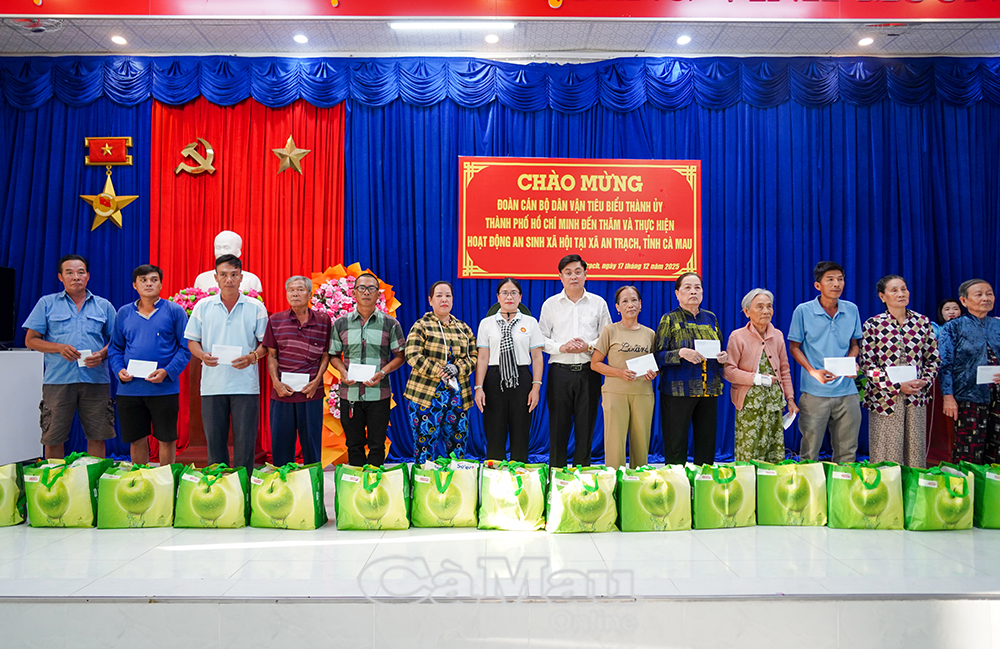 Trong khuôn khổ Hành trình về nguồn năm 2025, chiều 17/12, Đoàn cán bộ dân vận tiêu biểu Thành uỷ TP. Hồ Chí Minh đã đến tỉnh Cà Mau, dâng hương tại Khu tưởng niệm Chủ tịch Hồ Chí Minh (phường An Xuyên) và thực hiện hoạt động an sinh xã hội tại xã An Trạch. Chuyến công tác mang ý nghĩa tri ân, thể hiện tinh thần trách nhiệm, tình cảm gắn bó giữa TP. Hồ Chí Minh với Cà Mau trong chăm lo đời sống Nhân dân.