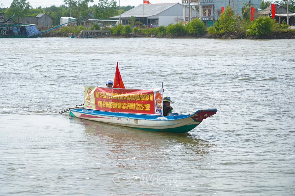 Trên mỗi chiếc vỏ lãi nhỏ, cán bộ, đoàn viên mang theo loa phát thanh, băng rôn, tờ rơi và tài liệu tuyên truyền. Vỏ lãi len lỏi qua từng con kênh, dừng lại tại các bến sông hoặc trước nhà dân để thông tin về quyền và nghĩa vụ của cử tri, thời gian và địa điểm bỏ phiếu, cũng như ý nghĩa của cuộc bầu cử. Nội dung tuyên truyền được trình bày ngắn gọn, dễ hiểu, phù hợp với khả năng nhận thức của người dân.