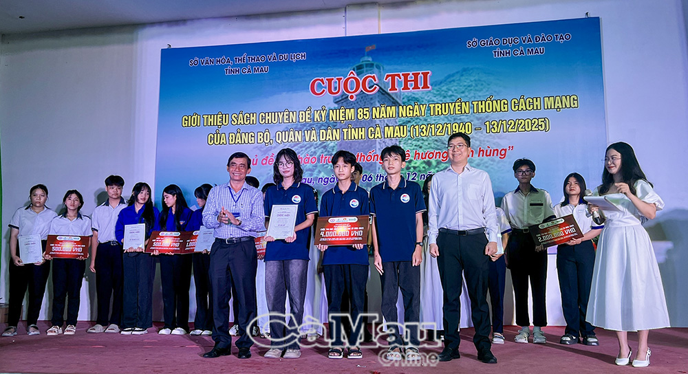 Báo Cà Mau Chiều 6/12, Sở Văn hoá, Thể thao và Du lịch phối hợp Sở Giáo dục và Đào tạo tổ chức tổng kết và trao giải Cuộc thi giới thiệu sách chuyên đề Kỷ niệm 85 năm Ngày truyền thống cách mạng của Đảng bộ, quân và dân tỉnh Cà Mau (13/12/1940-13/12/2025).