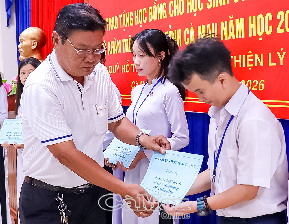Báo Cà Mau Thiết thực chào mừng Ðại hội Hội Khuyến học tỉnh Cà Mau lần thứ I, nhiệm kỳ 2026-2031, Hội Khuyến học tỉnh đã tích cực triển khai nhiều hoạt động. Nổi bật trong đó là các chương trình trao học bổng cho học sinh, sinh viên có hoàn cảnh khó khăn, đạt thành tích tốt trong học tập. Những hoạt động này không chỉ góp phần hỗ trợ về vật chất mà còn lan toả mạnh mẽ tinh thần hiếu học trong cộng đồng.