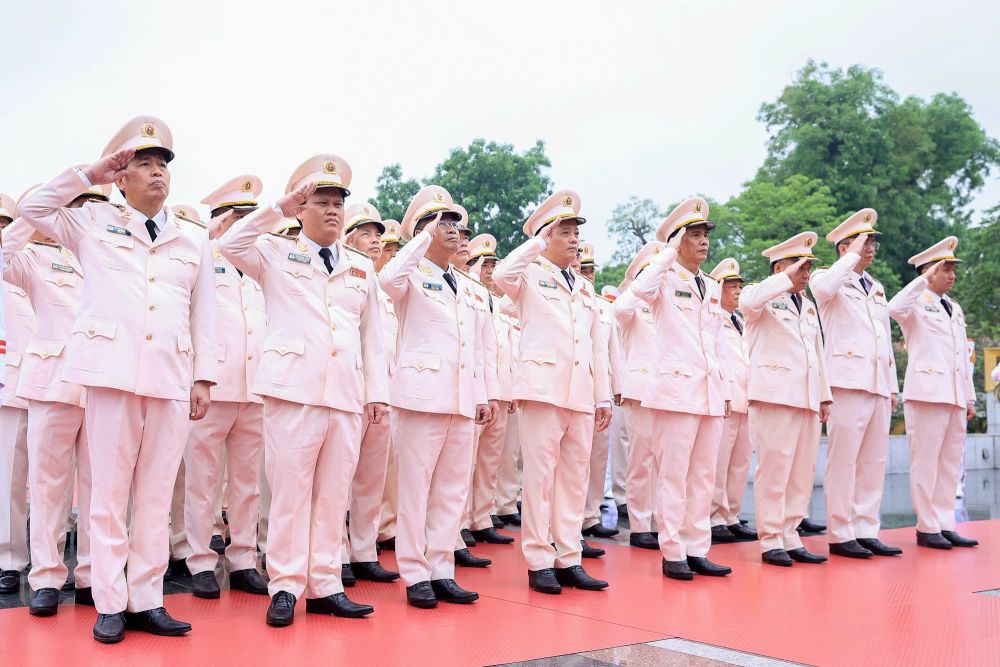 Đoàn đại biểu Đảng ủy Công an Trung ương - Bộ Công an dâng hương tưởng niệm các Anh hùng liệt sĩ tại Đài Tưởng niệm các Anh hùng liệt sĩ trên đường Bắc Sơn - Ảnh: VGP/Nhật Bắc
