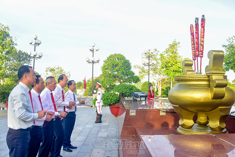 Sáng 3/3, nhân sự kiện Lễ khởi công xây dựng công trình Đền tưởng niệm Anh hùng liệt sĩ và Người có công tỉnh Cà Mau (tại phường An Xuyên), các đồng chí lãnh đạo tỉnh và nguyên lãnh đạo tỉnh đã đến viếng, dâng hương tại Khu Tưởng niệm Chủ tịch Hồ Chí Minh và hai Nghĩa trang Liệt sĩ tỉnh.