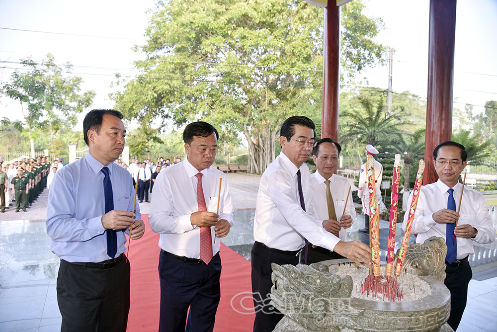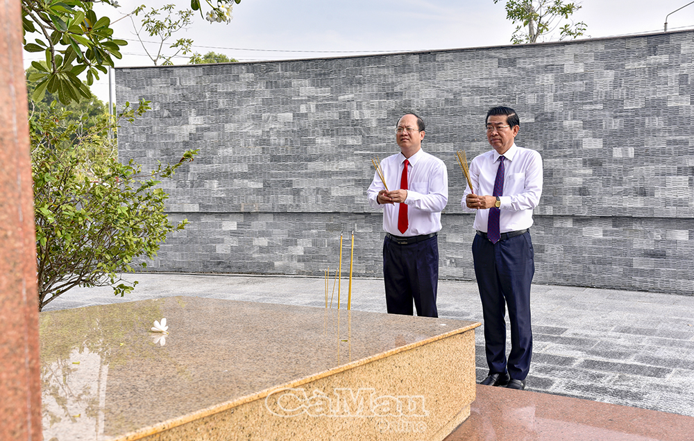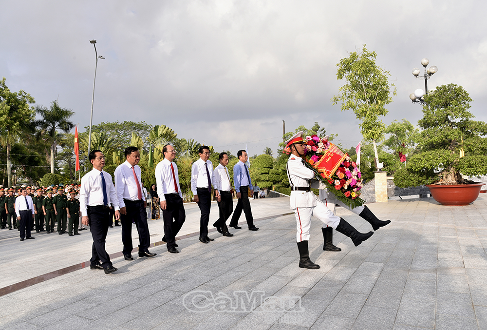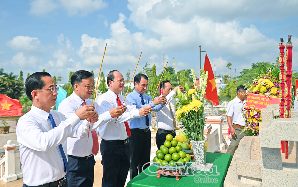 Cùng ngày, đoàn cán bộ Tỉnh uỷ - HĐND - UBND - Uỷ ban MTTQ Việt Nam tỉnh Cà Mau đến viếng Chủ tịch Hồ Chí Minh tại Khu tưởng niệm và dâng hương các anh hùng liệt sĩ tại Đền thờ 10 Anh hùng liệt sĩ Khởi nghĩa Hòn Khoai và Nghĩa trang Liệt sĩ tỉnh ở phường An Xuyên.