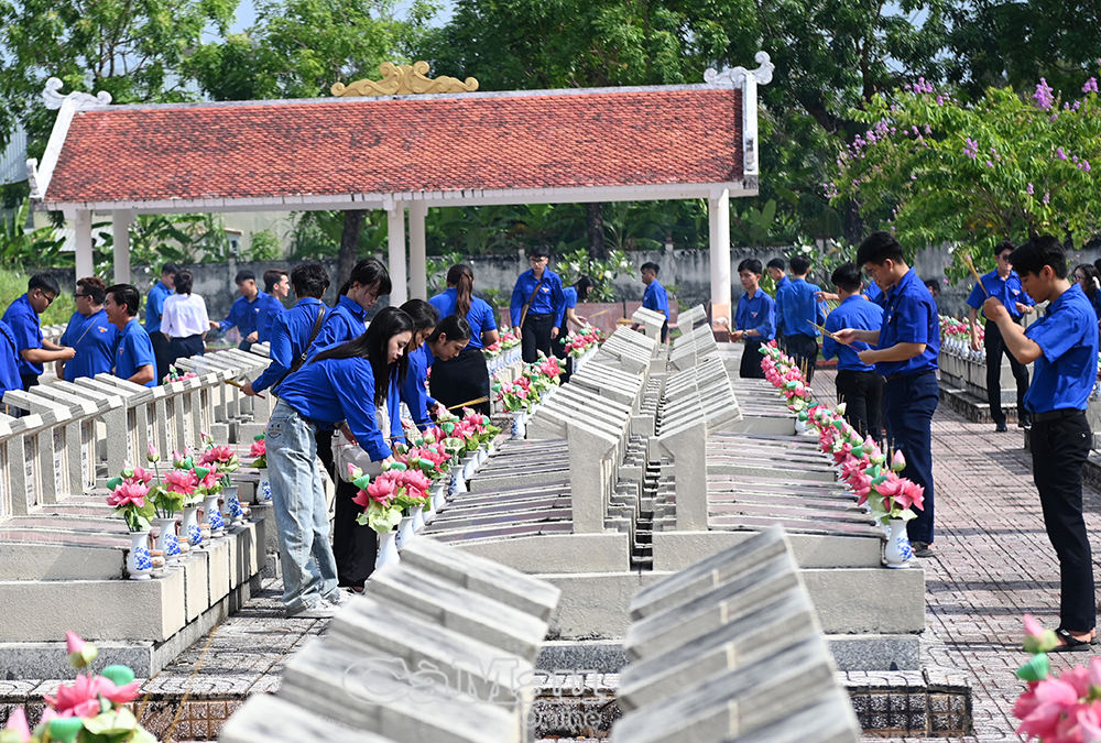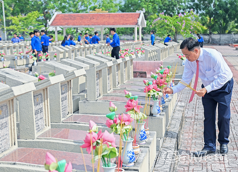 Đoàn viên, thanh niên thắp hương tri ân các anh hùng liệt sĩ.