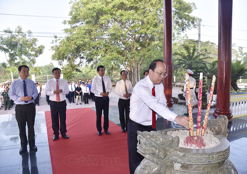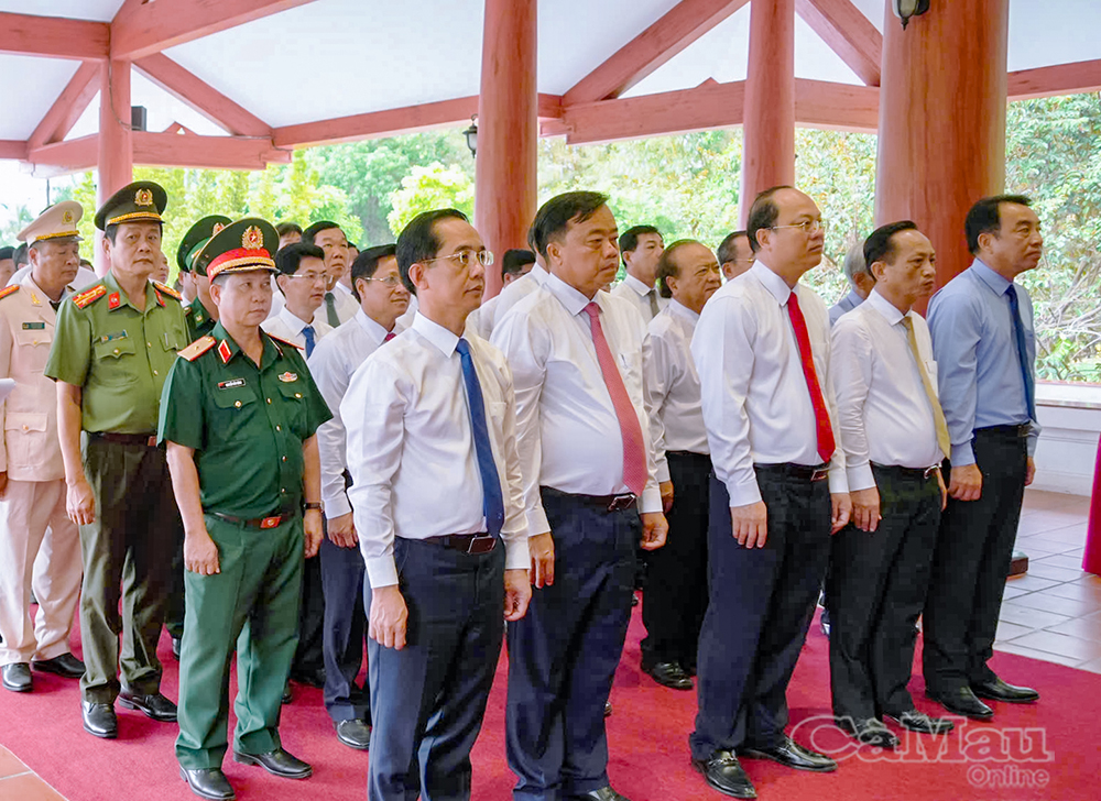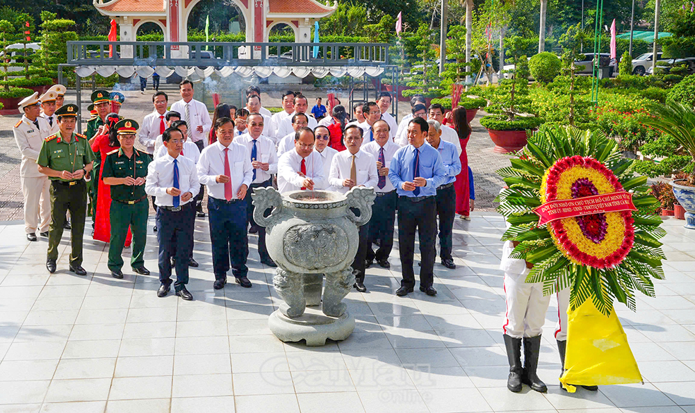 Dẫn đầu đoàn cán bộ Tỉnh uỷ - HĐND - UBND - Uỷ ban MTTQ Việt Nam tỉnh Cà Mau đến viếng, dâng hương Chủ tịch Hồ Chí Minh tại Đền thờ ở xã Châu Thới và các anh hùng liệt sĩ tại Nghĩa trang Liệt sĩ tỉnh ở xã Hoà Bình có các đồng chí: Nguyễn Hồ Hải, Uỷ viên Ban Chấp hành Trung ương Đảng, Bí thư Tỉnh uỷ, Trưởng Đoàn đại biểu Quốc hội tỉnh; Huỳnh Quốc Việt, Phó Bí thư Thường trực Tỉnh uỷ; Phạm Văn Thiều, Phó Bí thư Tỉnh uỷ, Chủ tịch HĐND tỉnh; Lữ Quang Ngời, Phó Bí thư Tỉnh uỷ, Chủ tịch UBND tỉnh; Hồ Thanh Thuỷ, Phó Bí thư Tỉnh uỷ, Chủ tịch Uỷ ban MTTQ Việt Nam tỉnh Cà Mau.