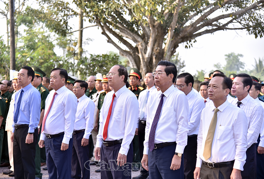 Đoàn cán bộ Tỉnh uỷ - HĐND - UBND - Uỷ ban MTTQ Việt Nam tỉnh Cà Mau và đông đảo cán bộ, chiến sĩ lực lượng vũ trang, các tầng lớp nhân dân tham dự lễ viếng tại Nghĩa trang Liệt sĩ tỉnh ở xã Hoà Bình.