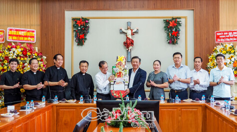 Thay mặt đoàn công tác, đồng chí Hồ Trung Việt, Trưởng ban Tuyên giáo và Dân vận Tỉnh uỷ, gửi lời chúc Giám mục Giáo phận Cần Thơ PhêRô Lê Tấn Lợi, các linh mục, tu sĩ và toàn thể đồng bào công giáo đón Giáng sinh an lành, hạnh phúc và đón năm mới 2026 vui tươi.