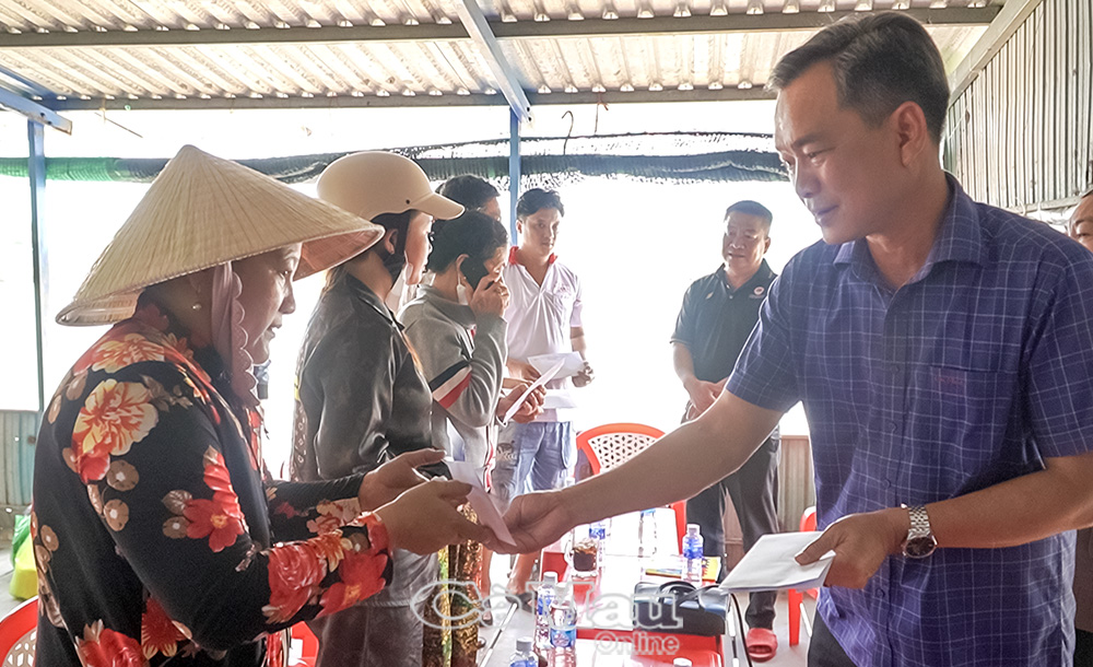 Thay mặt lãnh đạo tỉnh, Phó Chủ tịch Uỷ ban MTTQ Việt Nam tỉnh Cà Mau Nguyễn Văn Khởi trao hỗ trợ cho 9 hộ bị thiệt hại hoàn toàn, mỗi hộ 5 triệu đồng; các hộ bị thiệt hại một phần được hỗ trợ 3 triệu đồng/hộ.