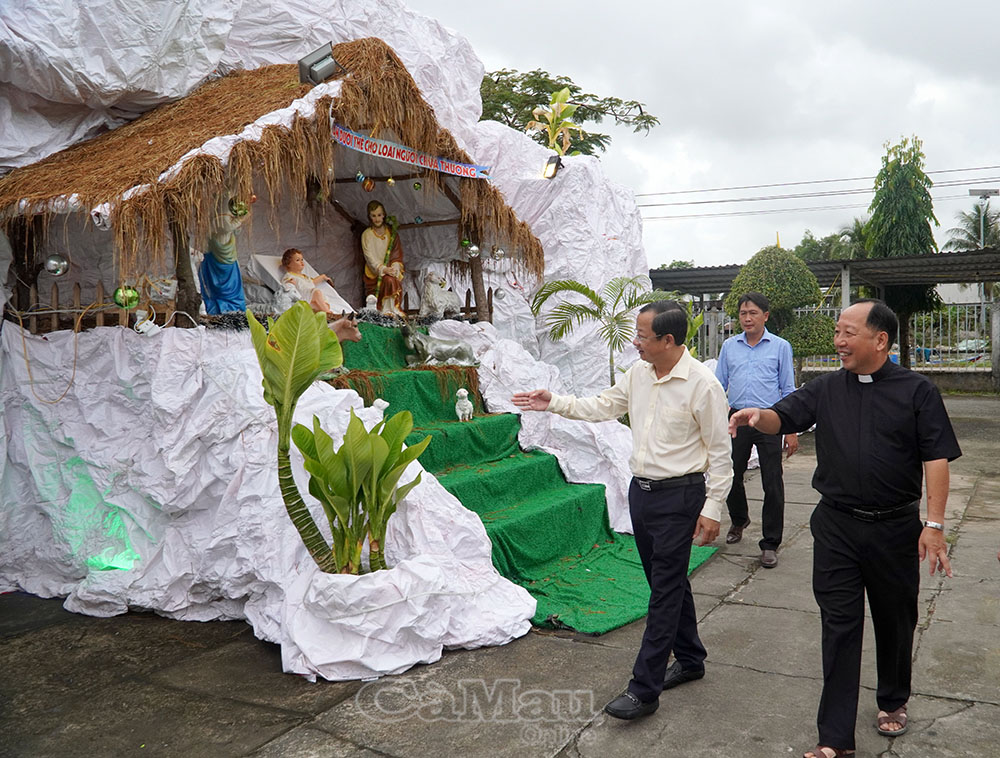 Tỉnh uỷ viên, Giám đốc Sở Văn hoá, Thể thao và Du lịch Nguyễn Quốc Thanh đến thăm, nắm không khí chuẩn bị đón Giáng sinh của bà con giáo dân tại Giáo xứ Huyện Sử (Ấp 2, xã Trí Phải).
