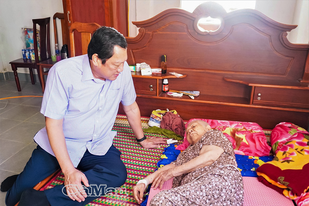 Chiều 11/2 (24 Tết), đồng chí Lâm Văn Bi, Uỷ viên Ban Thường vụ Tỉnh uỷ, Phó Chủ tịch Thường trực UBND tỉnh Cà Mau, cùng đoàn cán bộ đến thăm, chúc Tết các mẹ Việt Nam anh hùng (VNAH) và thương binh trên địa bàn xã Sông Đốc.