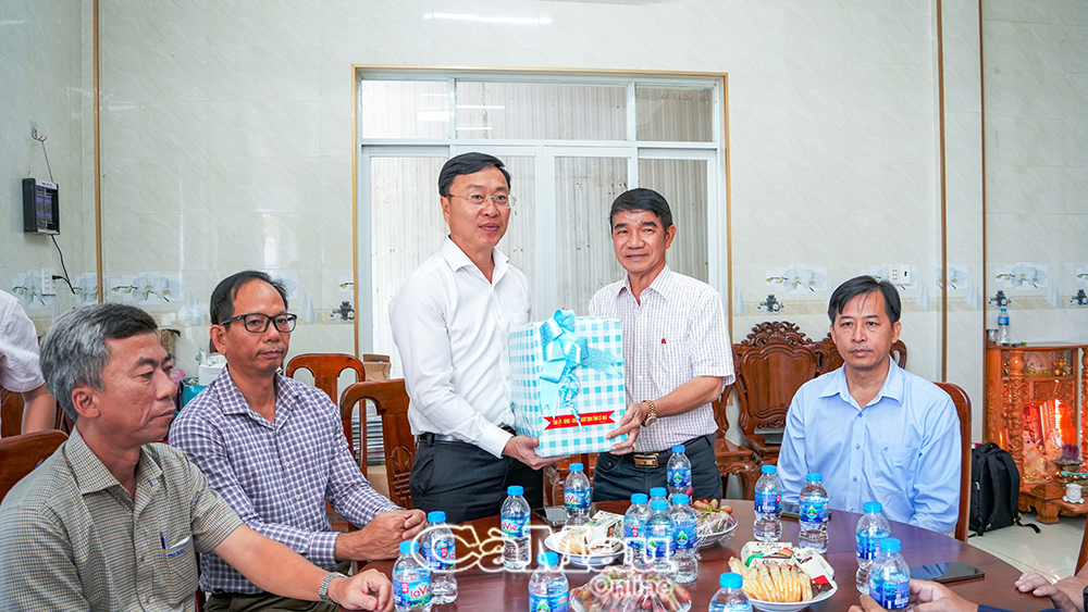 Đại diện Tỉnh uỷ, HĐND, UBND, Uỷ ban MTTQ Việt Nam tỉnh, ông Huỳnh Hữu Trí, Phó Chủ tịch UBND tỉnh Cà Mau tặng quà cho Công ty TNHH Quang Bình.