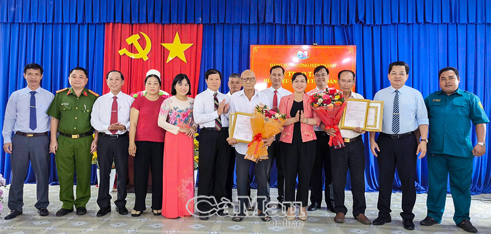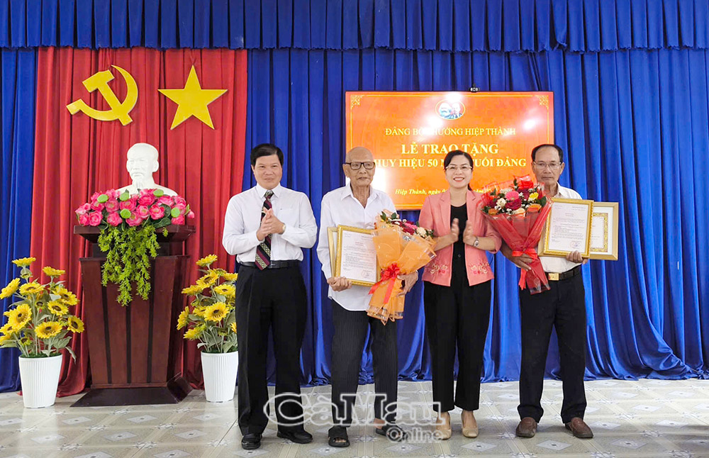 * Cùng ngày,  đồng chí Lê Thị Nhung, Uỷ viên Ban Thường vụ Tỉnh uỷ, Phó Chủ tịch Thường trực HĐND tỉnh Cà Mau đã đến trao Huy hiệu 50 năm tuổi Đảng cho 2 đảng viên cao niên phường Hiệp Thành.