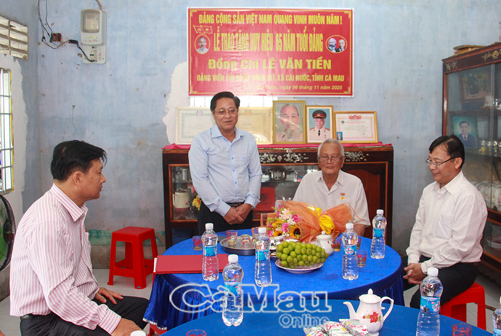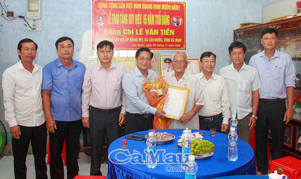 Ngày 6/11, đồng chí Bùi Tấn Bảy, Uỷ viên Ban Thường vụ Tỉnh uỷ, Phó Chủ tịch HĐND tỉnh cùng đoàn công tác đến xã Cái Nước và xã Cái Đôi Vàm trao Huy hiệu 60 năm và 65 năm tuổi Đảng cho hai đảng viên cao niên tiêu biểu.