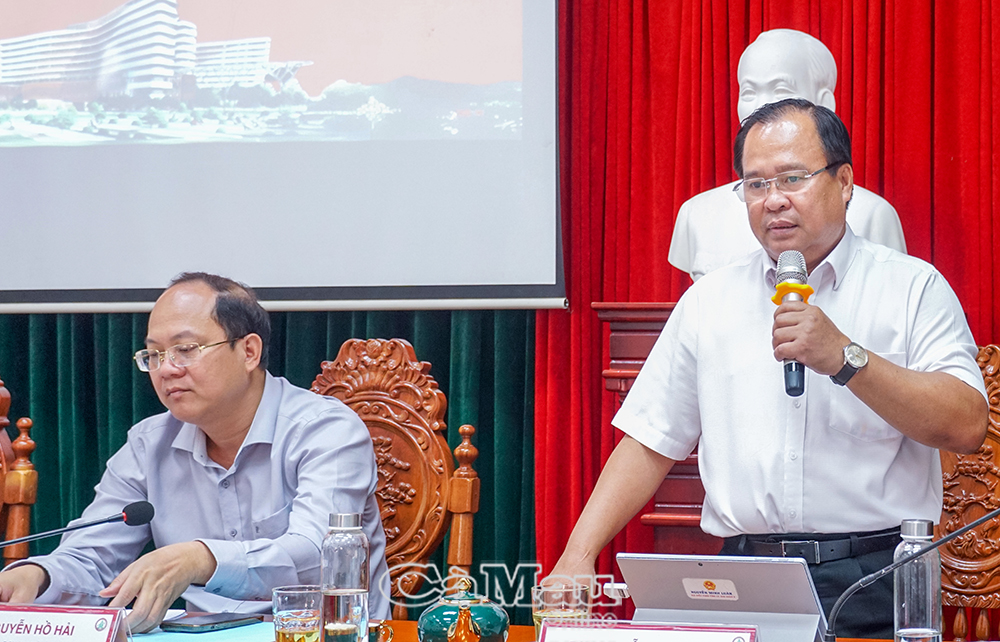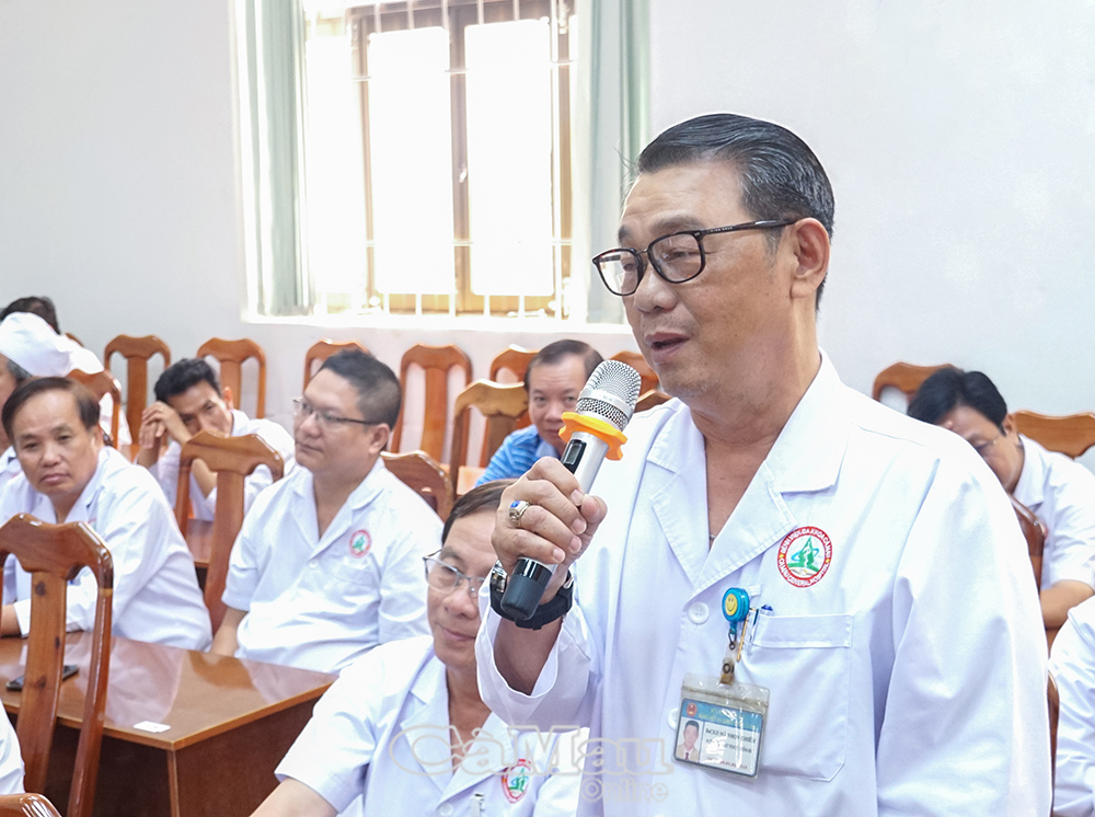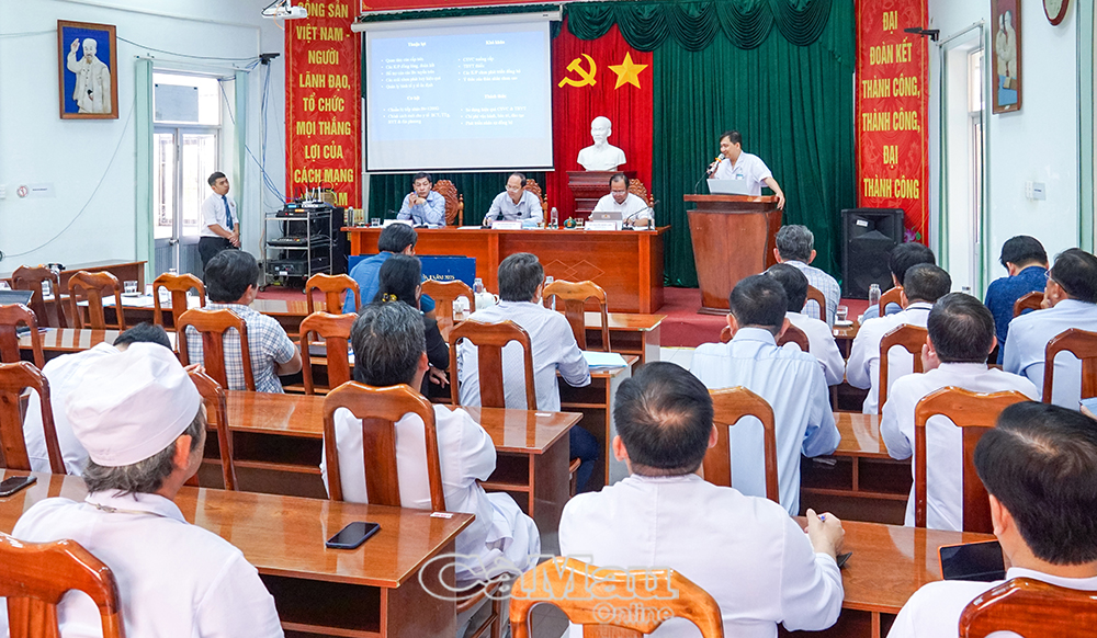 TS. Bác sĩ Tô Minh Nghị, Giám đốc Bệnh viện Đa khoa tỉnh Cà Mau, báo cáo hoạt động của bệnh viện.