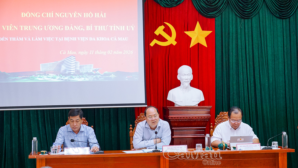 Đó là nhấn mạnh của đồng chí Nguyễn Hồ Hải, Uỷ viên Ban Chấp hành Trung ương Đảng, Bí thư Tỉnh uỷ Cà Mau, tại buổi làm việc với Bệnh viện Đa khoa tỉnh vào sáng 11/2. Cùng dự có Uỷ viên Ban Thường vụ Tỉnh uỷ, Phó Chủ tịch UBND tỉnh Nguyễn Minh Luân.