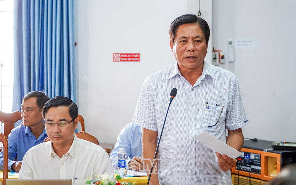 Bí thư Đảng uỷ xã Tân Thuận Phạm Thanh Phong báo cáo và kiến nghị các vấn đề liên quan phát triển kinh tế - xã hội địa phương.