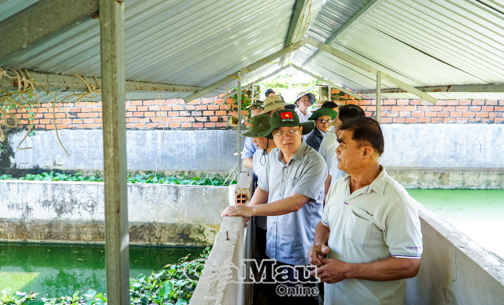 Bí thư Tỉnh uỷ Nguyễn Hồ Hải cùng đoàn công tác tham quan mô hình nuôi cua đinh thương phẩm của hộ ông Hà Văn Thắng, ấp Thuận Lợi B, xã Tân Thuận.