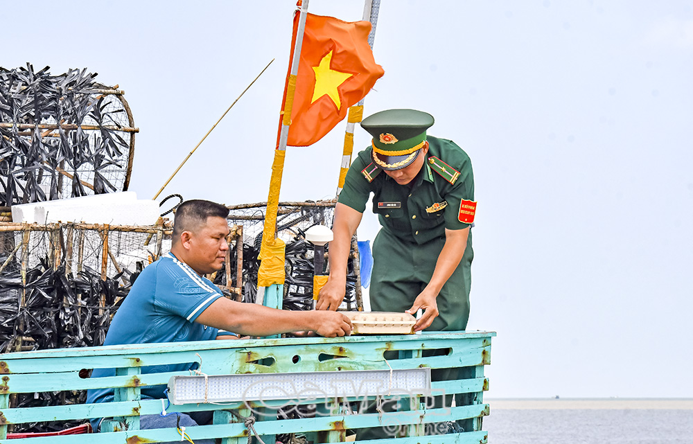 Bộ đội Biên phòng Khánh Hội kiểm tra thiết bị giám sát tàu cá và vận động ngư dân tuân thủ nghiêm các quy định khai thác thuỷ sản.