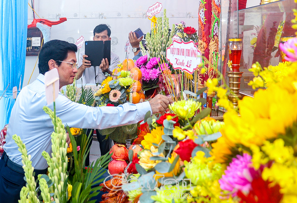 Đồng chí Trương Đăng Khoa, Uỷ viên Ban Thường vụ Tỉnh uỷ, Bí thư Đảng uỷ phường Tân Thành, dâng hương tại Lăng Ông Nam Hải (xã Gành Hào).