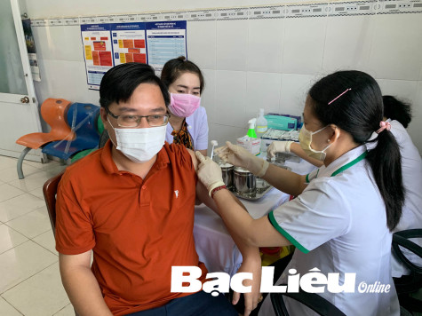 Tiêm ngừa vaccine phòng dịch COVID-19 tại Trung tâm Kiểm soát bệnh tật tỉnh Bạc Liêu. Ảnh: C.K